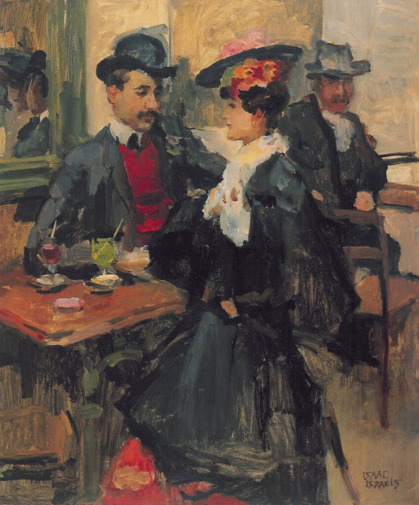 Toen hij in 1887 in Amsterdam ging wonen raakte hij al snel in de ban van de stad. Hij ontmoette de nieuwe avant-garde en zocht rusteloos naar een nieuwe, eigen stijl. George Hendrik Breitner (1857-1923) was de exponent van de jonge schilderbeweging en het kostte Isaac moeite hem te evenaren. Hij trainde zijn impressionistische teken- en schildertechniek in stadsgezichten, portretten, danshuizen, circusscènes, figuren en naakten. Exposeren deed hij echter nauwelijks; pas in het najaar van 1890 zond hij voor het eerst weer werk in naar Arti. Pas in 1894 heeft hij dan zijn zelfvertrouwen volledig herwonnen. Isaac Israels begon dan plein-air te werken op grachten en in parken en beperkte zich niet alleen tot Amsterdam: ook in Londen en Parijs, waar hij afwisselend een atelier betrekt, vindt hij zijn onderwerpen. Schilderde hij aanvankelijk straattypes, werklui en het uitgaansleven in de stad, rond 1900 worden zijn onderwerpen mondainer: dames in uitgaanskleding, figuren op het terras, paardrijdsters in Hyde Park, badgasten in Viareggio, mannequins bij Hirsch en Paquin, families in het park. Zijn palet licht dan ook op.
